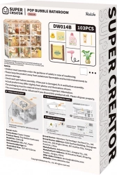 Crea il tuo diorama da bagno in delicate tonalità pastello con vasca su piedini, specchio, mensoline e tanti accessori in miniatura. Grazie ai pezzi tagliati con precisione in materiali stabili assemblerai il modello facilmente e senza colla — il risultato è una scena in miniatura solida e splendidamente dettagliata, ideale su uno scaffale o come regalo.