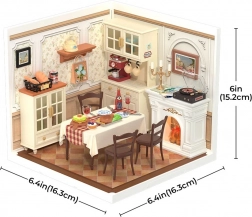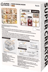 Crea la tua sala da pranzo in miniatura in calde tonalità crema, con un ampio tavolo, una credenza e tanti accessori autentici: dai prodotti da forno, piattini e tazze fino alla macchina del caffè, al candeliere e al giradischi. I dettagli realistici e l’illuminazione LED donano una piacevole atmosfera domestica e un fascino unico al modello.