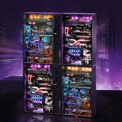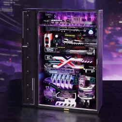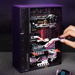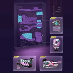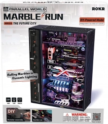 Crea a casa un panorama sci‑fi pulsante con discese veloci tra grattacieli, tubazioni e fabbriche. L’ascensore automatico riporta le biglie alla partenza e la luce LED al neon dona all’intera scena un’atmosfera cyberpunk. Con un solo pulsante passi tra “giorno frenetico” e “notte colorata”.
