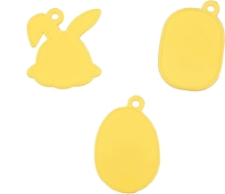Tre ciondoli double-face con motivi pasquali si decorano facilmente con gli adesivi – perfetti come piccoli pensieri per famiglia e amici.