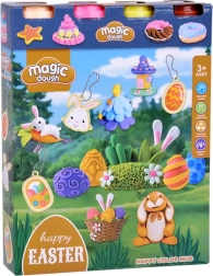 Questo colorato set creativo offre ai bambini tutto il necessario per realizzare deliziose decorazioni pasquali. Grazie a 4 vasetti di pasta da modellare e ai coperchi intelligenti che fungono da formine con animaletti, in un attimo nasceranno coniglietti, pulcini e uova decorate. La grande forma a uovo propone una ricca gamma di motivi (coniglietto, carota, ovetti, pulcino, cestino) ed è completata da altre due formine con foglie, fiorellini, nuvolette e dolcetti.