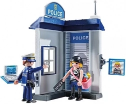 La postazione POLICE dettagliata con attrezzatura per interrogatori, inclusi tavolo, lavagna e strumenti tecnici, offre scene realistiche e ore di divertimento.