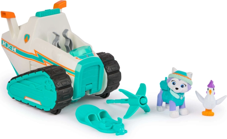 Il set include una figurina dettagliata di Everest con equipaggiamento invernale, il pulcino Chickaletta e accessori a tema per avventure sulla neve. I bambini possono partire per missioni di salvataggio, “sfrecciare” sui cingoli, azionare il lanciatore e salvare gli amici – proprio come nella serie.