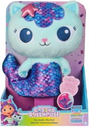 Unisciti al mondo magico con il peluche Sirenetta Gatto della serie Gabby's Dollhouse. Questo giocattolo lungo 25 cm è perfetto per i bambini per giocare e dormire. È dotato di una superficie extra morbida e una coda scintillante che si muove quando si preme la pancia, pronto a danzare in ogni occasione. I bambini possono esplorare il loro mondo con una gamma di personaggi, accessori e elementi di arredo.