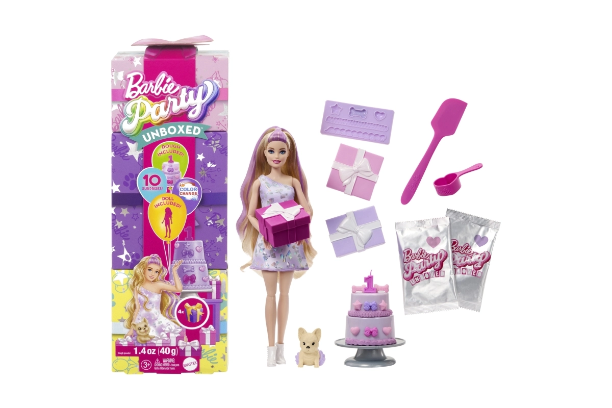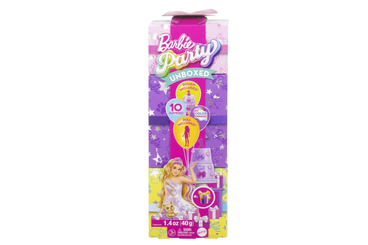 Ogni confezione nasconde una bambola BARBIE, un cagnolino e una serie di accessori a tema festa di compleanno – perfetti per chi ama scartare i regali.