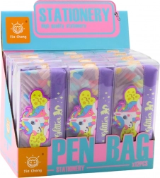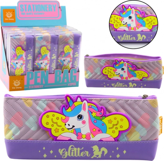 Astuccio viola con motivo unicorno, ideale per conservare materiali scolastici. Materiale morbido, resistente e sicuro conforme alle norme CE e EN71.