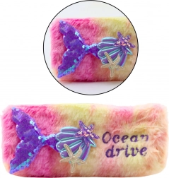 Unico astuccio di peluche progettato per bambini che amano le sirene e il mare! Astuccio rosa con coda viola, paillettes e conchiglie è l'accessorio ideale per la cancelleria scolastica. Morbido e carino, perfetto per contenere penne, matite e altri essenziali articoli scolastici.