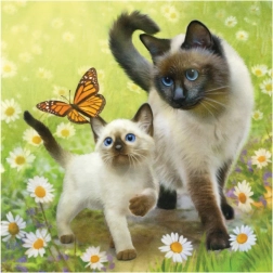 Una scena incantevole di gatti con una farfalla insegna ai bambini a cogliere dettagli e colori durante la composizione.