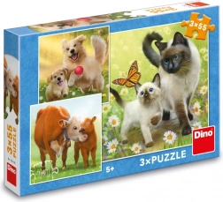 Questo set contiene tre puzzle separati da 55 pezzi ciascuno, che conquistano i bambini con allegre illustrazioni di cagnolini, gatti e altri animaletti. Grazie al cartone robusto i puzzle sono sufficientemente resistenti anche a composizioni frequenti e sono facili da afferrare.