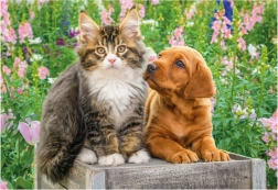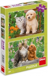 Puzzle Cagnolino e gattino in giardino 2×48 pezzi