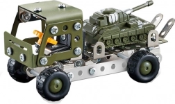 Questo kit di costruzione metallico ti permette di creare un'auto militare unica con un carro armato. Il set include una combinazione di parti metalliche e accessori in plastica, che vengono uniti tramite viti e dadi. È progettato per essere semplice da assemblare, divertente e al contempo una sfida: