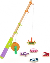 Divertente gioco in legno per piccoli pescatori dai 2 anni. Con una canna magnetica i bambini pescano pesciolini di legno sviluppando motricità fine, coordinazione occhio–mano e destrezza. Il materiale naturale e la lavorazione sicura garantiscono ore di gioco creativo.