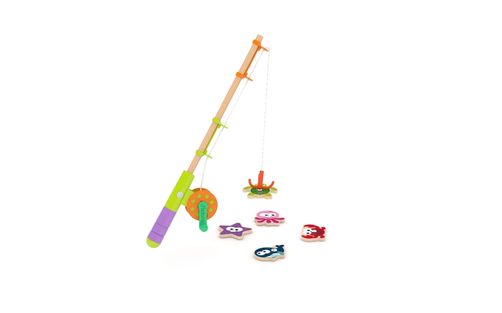 Parti per la tua prima avventura di pesca! Questo set in legno offre un divertimento semplice e coinvolgente che favorisce concentrazione e pazienza. La canna magnetica rende facile catturare i pesciolini, così il gioco è adatto anche ai più piccoli.