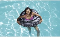 La ciambella presenta l'aspetto realistico di un pneumatico d'auto, che cattura l'attenzione di bambini e adulti e aggiunge un elemento divertente a ogni piscina.