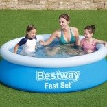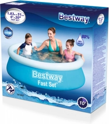 La piscina gonfiabile Bestway Fast Set con un diametro di 183 cm e un'altezza di 51 cm è una soluzione pratica ed economica per l'uso domestico. È realizzata in materiale DuraPlus™ resistente, che garantisce durabilità, resistenza ai raggi UV e ai danni meccanici. Si monta facilmente su erba o superfici rigide e lisce.