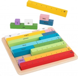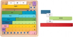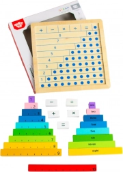 Questo set educativo combina pezzi in legno colorati con numeri e segni con una pratica tavoletta in legno. I bambini comprendono rapidamente le relazioni tra i numeri e le semplici operazioni aritmetiche grazie alla composizione delle operazioni e alla dimostrazione visiva.