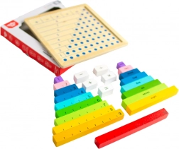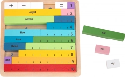 - Tavoletta in legno e blocchi colorati con numeri e simboli matematici