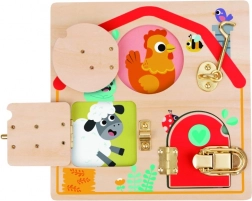 Questa tavola di manipolazione in legno di alta qualità è la scelta ideale per un gioco significativo. Esplorando i singoli elementi, i bambini allenano le dita, imparano i principi di apertura e chiusura e, allo stesso tempo, sviluppano in sicurezza le proprie abilità. I diversi meccanismi stimolano la concentrazione e favoriscono l’autonomia.