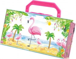Riponi i tuoi tesori in questo bellissimo portagioie a forma di valigetta con motivo Fenicottero. Un accessorio ideale per piccole principesse.