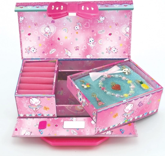 Il portagioie a forma di valigetta è un modo splendido per conservare i gioielli e le piccole cianfrusaglie dei bambini. Il design della gattina conferisce al portagioie un aspetto adorabile che i bambini piccoli adorano.