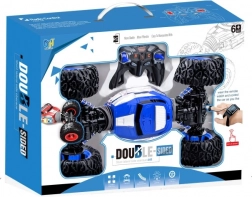Divertente e resistente auto RC in colore blu con un controllo unico tramite orologio, offre guida flessibile, 2 modalità di guida, luci LED colorate e doppio motore per una migliore capacità fuoristrada. Grazie alla frequenza 2,4 GHz ha un segnale stabile e una portata fino a 45 m, raggiunge una velocità di 4–4,5 km/h e si ricarica facilmente tramite USB.