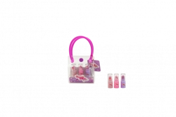 Adorabile mini borsetta per bambini piena di trucchi per piccole fashioniste. Scegli tra 4 set diversi in base al contenuto: 3× smalto per unghie, 3× balsamo labbra, 3× gloss labbra oppure 3× rossetto. La pochette trasparente e compatta con manico è ideale per viaggi, regali e giochi da salone di bellezza.