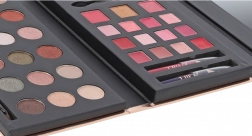 La palette cosmetica Glam To Go è ideale per ogni donna che desidera avere tutti i suoi cosmetici raccolti in un elegante confezione. Contiene 18 ombretti, 12 rossetti cremosi e altri accessori cosmetici.