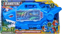 Il garage squalo TEAMSTERZ unisce gioco d’azione, archiviazione e trasporto. All’interno si nasconde una rampa drive-thru, su cui le auto sfrecciano direttamente attraverso le fauci dello squalo. Il lanciatore di proiettili integrato sulla testa dello squalo aggiunge una dose extra di adrenalina a ogni corsa.