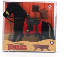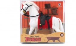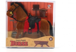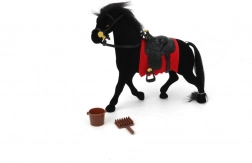 Il set include un cavallino con tappetino rosso e sella, completato da un secchio marrone e una spazzola, che supportano il gioco immaginativo.