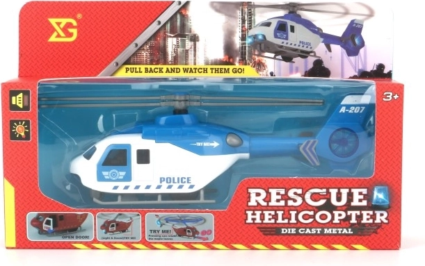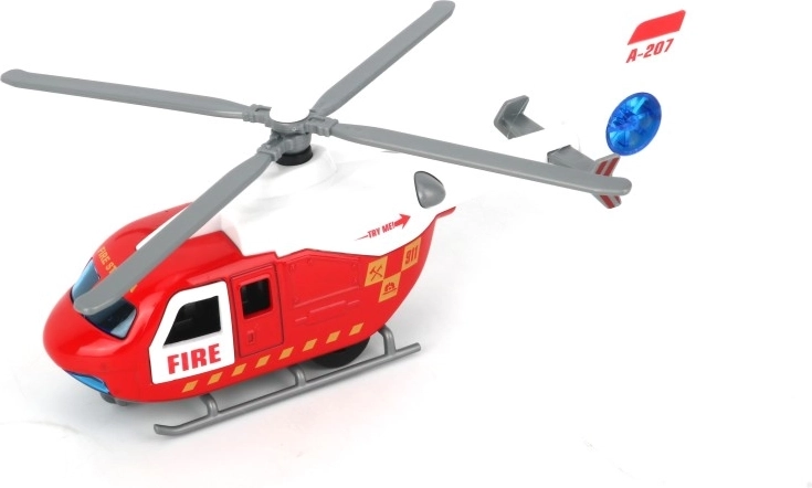 Il modello è disponibile in motivi popolari – elicottero dei vigili del fuoco, di polizia e di soccorso – e si integra facilmente in qualsiasi collezione di macchinine e mezzi. Grazie alla costruzione resistente è ideale per il gioco quotidiano a casa e in viaggio.