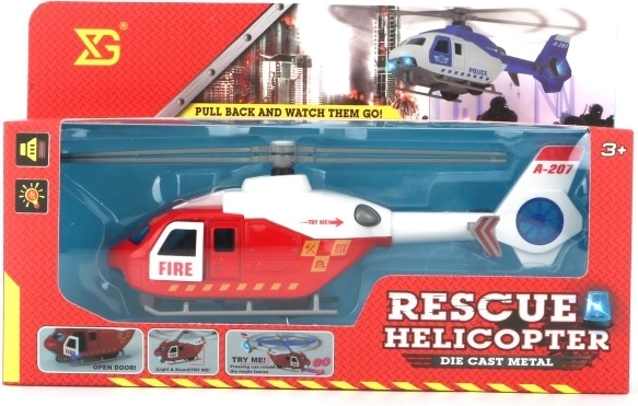 Scopri il mondo d’azione dei soccorritori con l’elicottero a retrocarica, che parte da solo in avanti dopo essere stato tirato. I bambini apprezzeranno i dettagli realistici e il facile utilizzo senza batterie, mentre allenano naturalmente coordinazione occhio-mano e motricità fine.