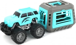 - Fuoristrada, rimorchio con gabbia, figura di dinosauro