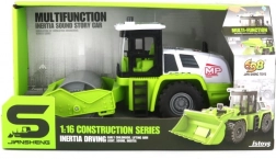 Questo rullo verde, ricco di dettagli, conquisterà i piccoli costruttori con un look realistico e funzioni che danno vita a ogni cantiere dei bambini. Grazie al pignone a inerzia (meccanismo a volano) il veicolo parte con una leggera spinta, mentre gli effetti luminosi e sonori ricreano l’atmosfera del lavoro su strada.