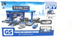 Con questa stazione di servizio della polizia puoi eseguire vari interventi di polizia e allo stesso tempo rifornire facilmente di carburante le tue due macchinine incluse.