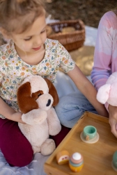 Con i suoi 41 cm, questo cane di peluche è perfetto da portare a letto o in viaggio dai vostri bambini.