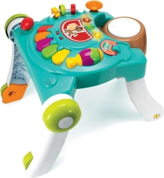 Questo centro musicale di intrattenimento può trasformarsi immediatamente in un girello, in un tavolo musicale o in un centro giochi per il bambino seduto o sdraiato a pancia in giù.