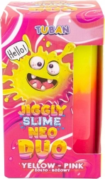 Jiggly Slime Neo Duo è un’ottima scelta per bambini e adulti che amano i giochi antistress. Grazie alla formula unica, lo slime vibra in modo divertente, si estende splendidamente e permette di creare bolle e trick originali. Il design bicolore in giallo e rosa neon si fonde efficacemente durante il gioco in una tonalità d’impatto.