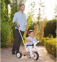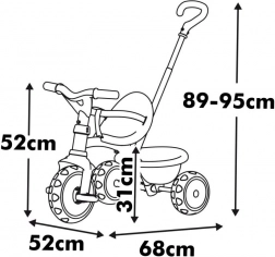 L’asta di guida regolabile su 3 livelli di altezza (fino a 95 cm) consente di guidare il triciclo in modo comodo e sicuro durante l’apprendimento delle prime pedalate.