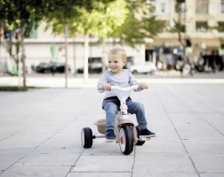 Per sicurezza e comfort, il triciclo è dotato di cintura di sicurezza, pedali antiscivolo con possibilità di blocco della pedalata e sedile ergonomico regolabile in 2 posizioni. Le ruote silenziose sono perfette in città e al parco, mentre il cestino in plastica ribaltabile offre spazio per giochi e piccoli oggetti.