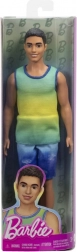 La bambola Ken presenta una silhouette ampia, indossando un top ombre che sfuma dal blu al verde, ideale per tutte le personalità e occasioni. Shorts in denim sdruciti e sneakers argentate completano il suo look versatile e sofisticato, perfetto sia per incontri con amici che per divertirsi sulla spiaggia.
