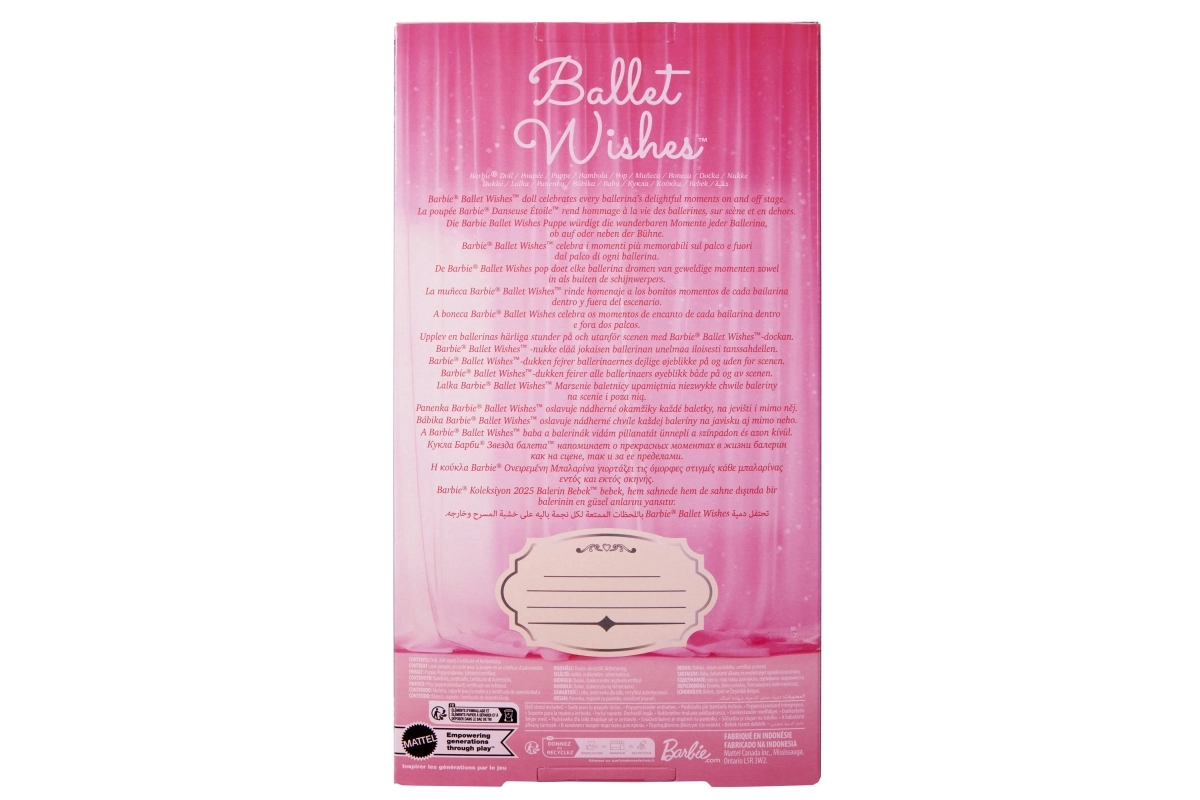 La bambola Barbie splendida ballerina è creata per tutti i grandi palcoscenici. Il delicato tutù rosa con gonna a strati, la tiara e le scarpette da balletto rosa con fiocchetti sottolineano l’elegante aspetto della ballerina. Le articolazioni mobili su spalle, gomiti, polsi, anche e ginocchia consentono pose realistiche e passaggi fluidi tra di esse.