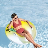 Questa ciambella dal motivo a limone è ideale per il relax e il divertimento in acqua. Il generoso diametro di 114 cm e le maniglie robuste garantiscono comfort e maneggevolezza più sicura durante la salita e il nuoto. Il giallo brillante aumenta la visibilità in acqua e dona la giusta atmosfera estiva.