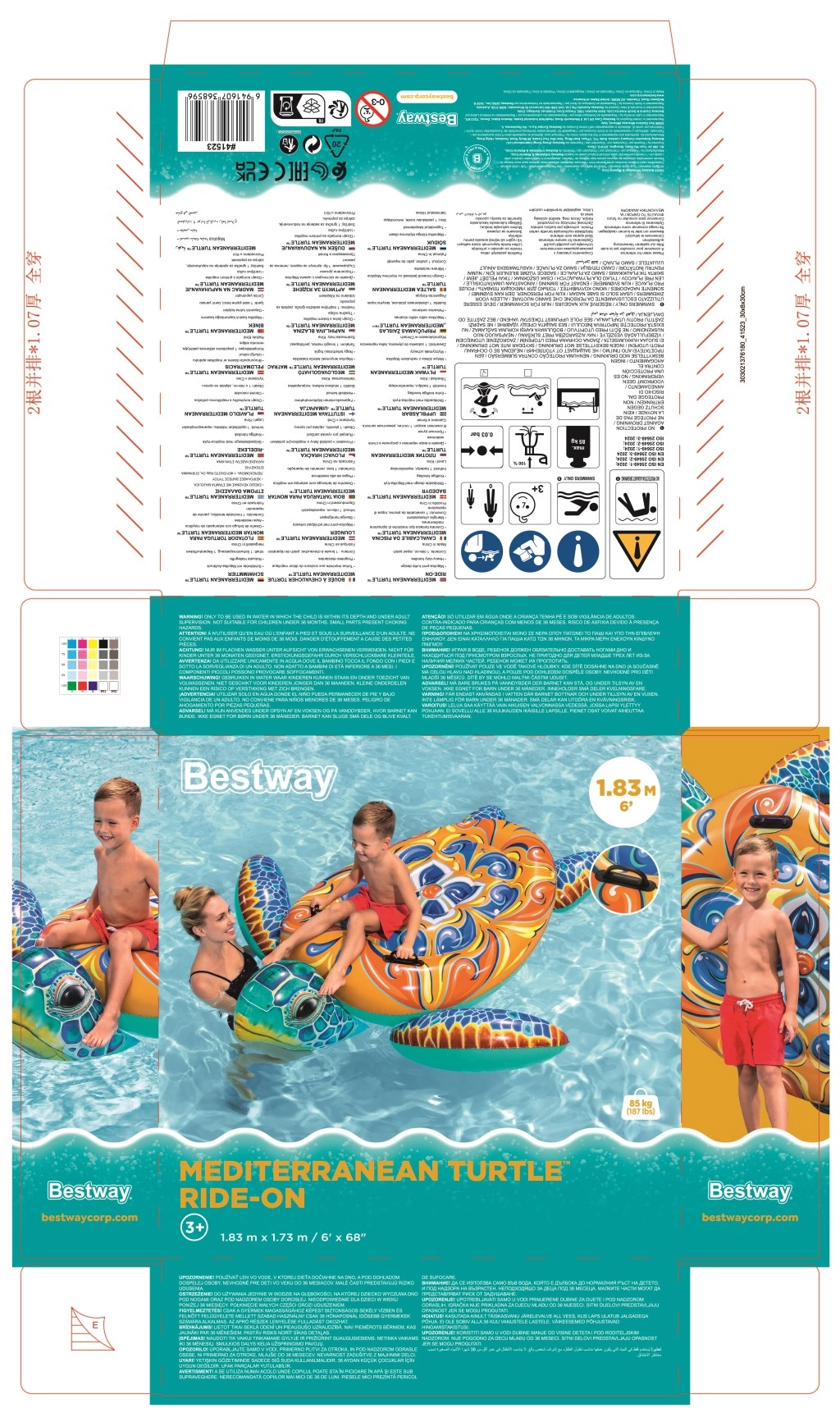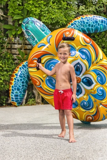 La tartaruga gonfiabile Bestway con vivace stampa Maiolica è la scelta ideale per il divertimento in acqua. Grazie alle grandi dimensioni 183 × 173 cm offre uno spazio confortevole per sdraiarsi e per la guida, mentre due maniglie integrate garantiscono una presa sicura e stabilità durante la salita e il gioco.