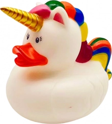 - Design unico – paperella bianca con criniera e coda arcobaleno e corno da unicorno che conquista al primo sguardo.
