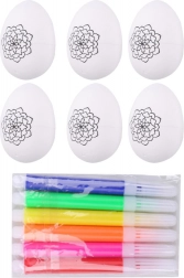 Questo divertente set offre tutto ciò di cui i bambini hanno bisogno per creare uova decorate originali. Le uova hanno una superficie liscia e bianca pronta per essere dipinta, contornata e rifinita. Grazie ai pennarelli in sei colori inclusi, i bambini possono creare subito e sviluppare la loro creatività.