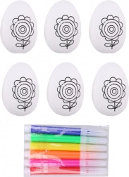 Il set contiene tutto il necessario: 6 uova di dimensioni pratiche e 6 pennarelli in colori vivaci. Le attività creative favoriscono la coordinazione occhio–mano, l’abilità manuale e la creatività dei bambini e sono un’ottima idea regalo di Pasqua.
