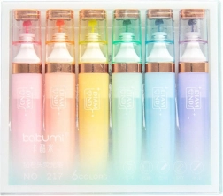 Set di evidenziatori pastello è la scelta ideale per studenti, creativi e professionisti che apprezzano l'estetica e la funzionalità nel loro lavoro quotidiano. Ogni evidenziatore si distingue per gli eleganti dettagli dorati e le sfumature pastello uniche, rendendoli non solo uno strumento utile, ma anche un complemento stiloso al vostro tavolo.