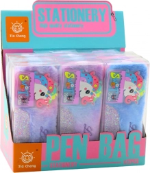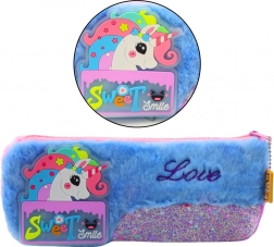 Questo magico astuccio in peluche di colore blu con motivo di unicorno e elementi scintillanti è un'ottima scelta per tutte le necessità scolastiche. Morbido e piacevole al tatto, offre ampio spazio per riporre penne, matite e altri accessori necessari.