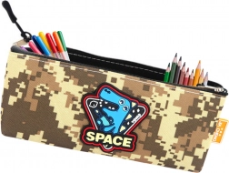 Una custodia per matite di dimensioni gradevoli con motivo dinosauro cosmico in motivo mimetico digitale. Il suo materiale tessile resistente e chiusura pratica con zip garantiscono una lunga durata anche con un uso intenso.