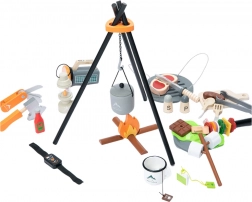 Con questo fantastico set di campeggio in legno, i bambini possono godersi molte avventure sia a casa che all'aperto. Accessori realistici offrono possibilità di gioco di ruolo nel campeggio, dall'accendere il fuoco alla preparazione dei pasti. Il set include uno zaino, una lanterna, forbici da barbecue e altri strumenti che favoriscono lo sviluppo di abilità manuali e cognitive.